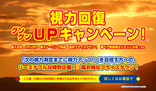 - 【視力回復 目の愛護月間キャンペーン】好評実施中!