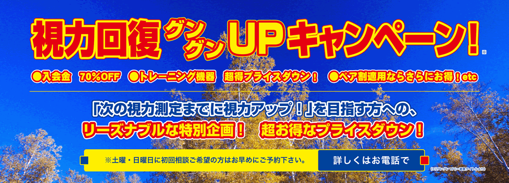 - 【視力回復 目の愛護月間キャンペーン】好評実施中!