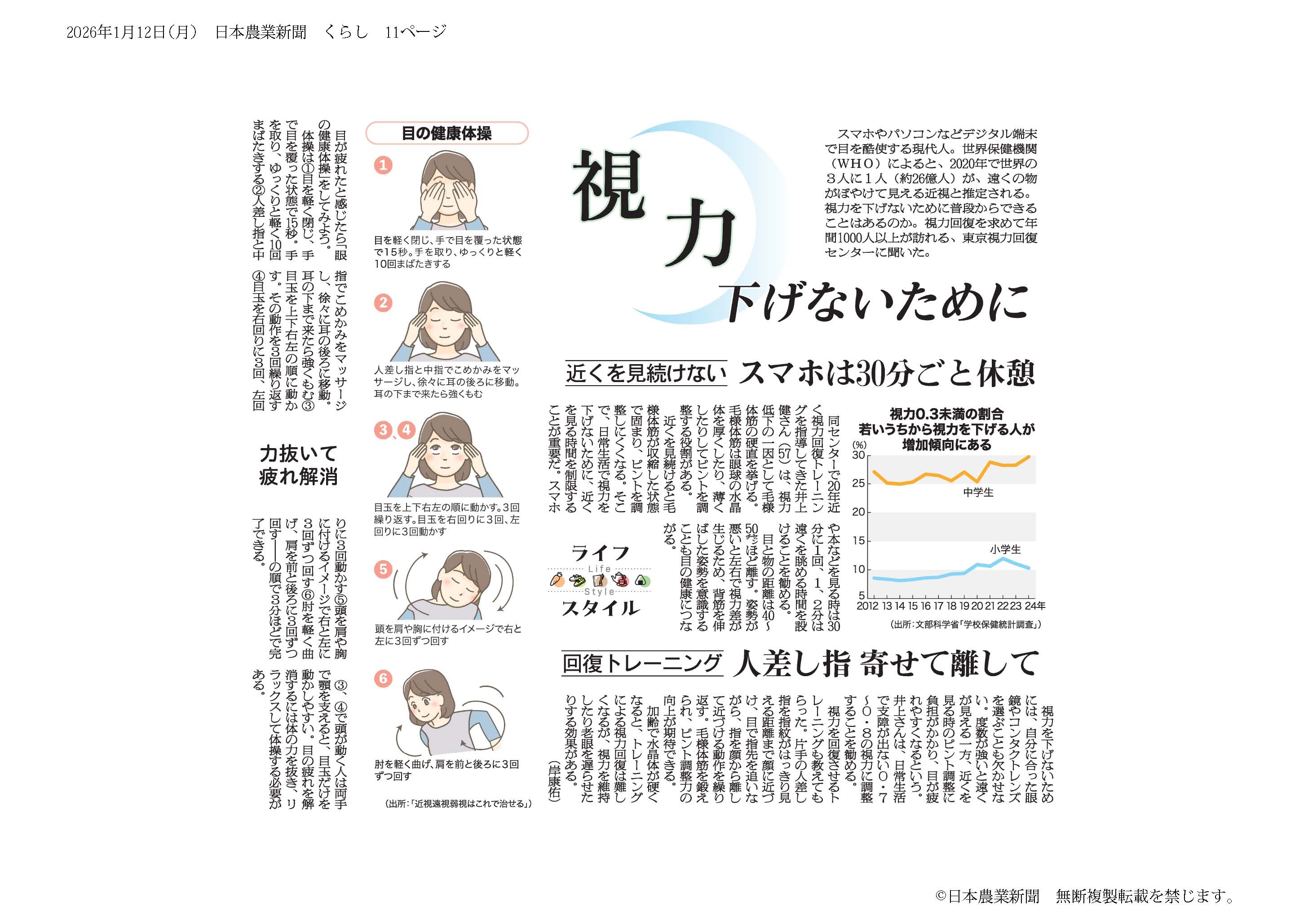 - 1視力1.0未満の子どもが過去最高に 高校生は7割超…視力低下止まらず 文科省 (クリックで記事へ飛べます)