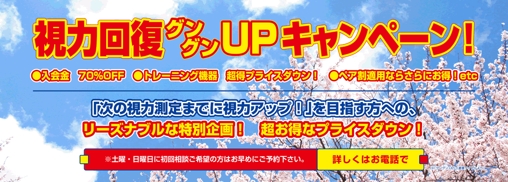 - 【視力回復 目の愛護月間キャンペーン】好評実施中!